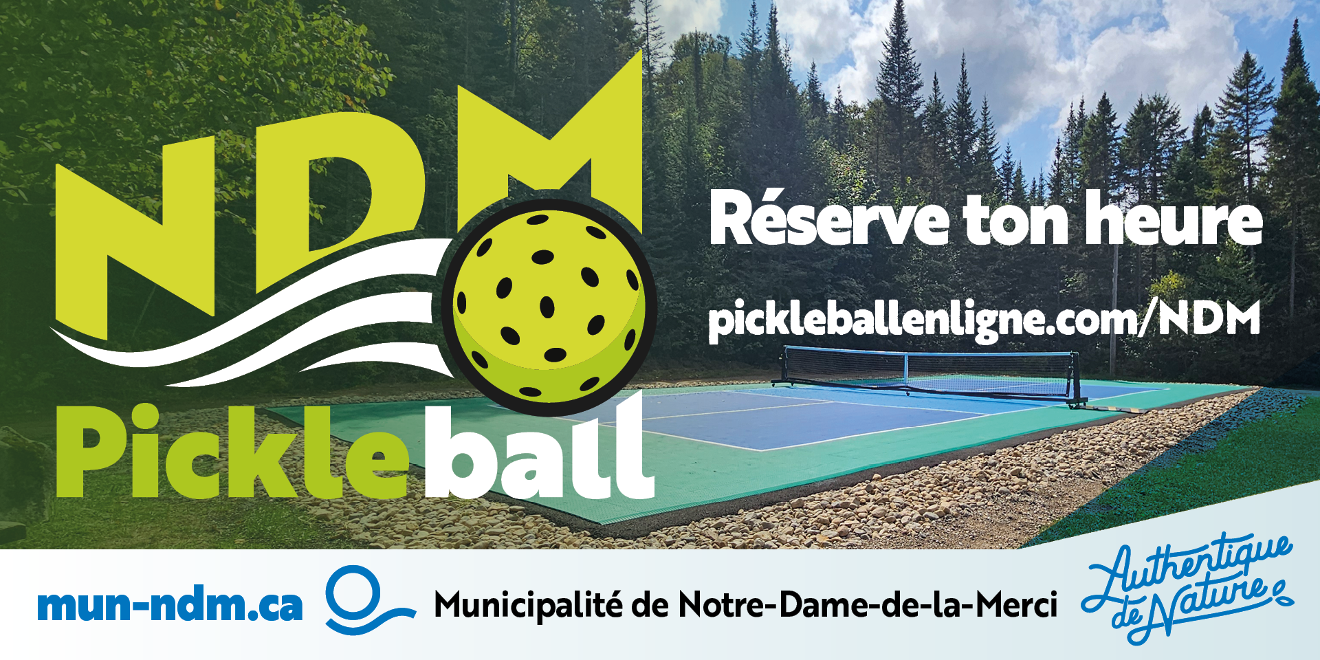 Pour réserver votre plage horaire, rendez-vous sur www.pickleballenligne.com/ndm