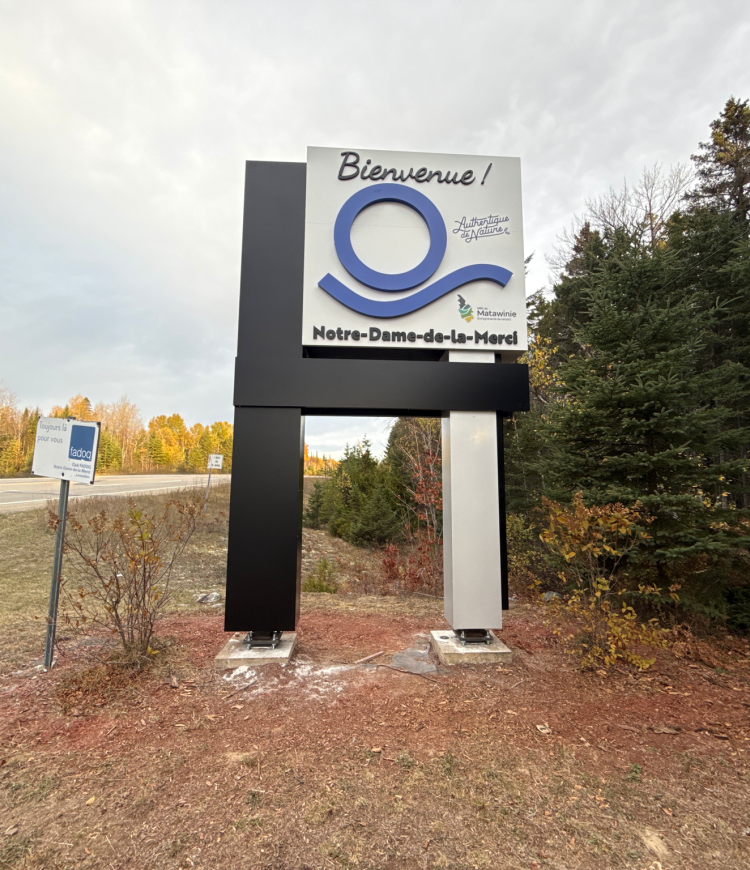 Les nouvelles enseignes de la Municipalité de Notre-Dame-de-la-Merci ont maintenant été installées sur le territoire ! Ces panneaux d’accueil, installés à des points stratégiques, visent à rehausser l’image et la visibilité de la municipalité tout en offrant un accueil soigné à ceux et celles qui y entrent. Le projet prévoyait la revitalisation de quatre enseignes : deux situées le long de la route 125, une sur le chemin Saint-Côme et une autre sur le chemin Saint-Guillaume. Seule l’enseigne orientée vers Saint-Côme reste à installer, en attente de la livraison du poteau certifié par le ministère des Transports du Québec (MTQ).